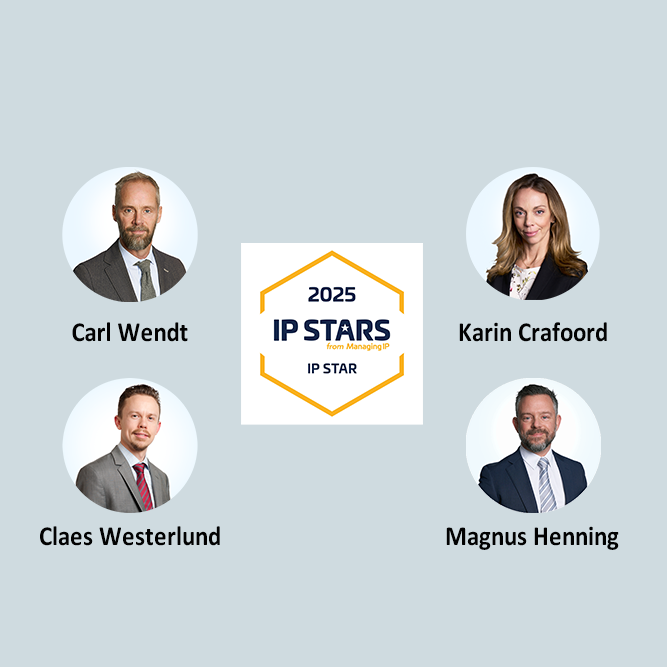 Våra konsulter Karin Crafoord, Magnus Henning, Carl Wendt och Claes Westerlund har utsetts till IP Stars 2025 av Managing IP (MIP).